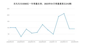 2023年3月,东风风光S560销量为91辆,同比下降9.9%,环比持平。2022年03月-2023年03月份,东风风光S560销量为1281辆,同比下降91.92%。