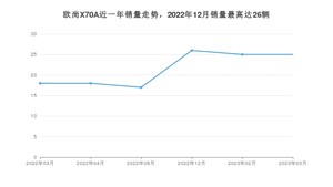 2023年3月,欧尚X70A销量为25辆,同比增长38.89%,环比持平。2022年03月-2023年03月份,欧尚X70A销量为129辆,同比下降98.55%。
