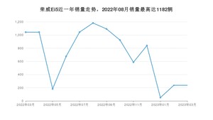 2023年3月,荣威Ei5销量为237辆,同比下降77.28%,环比持平。2022年03月-2023年03月份,荣威Ei5销量为9135辆,同比下降57.1%。