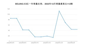 2023年3月,BEIJING-X3销量为44辆,同比下降48.24%,环比持平。2022年03月-2023年03月份,BEIJING-X3销量为588辆,同比下降95.18%。