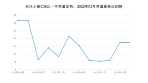 2023年3月,东风小康C36销量为35辆,同比下降44.44%,环比持平。2022年03月-2023年03月份,东风小康C36销量为363辆,同比增长236.11%。
