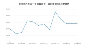 2023年4月,安阳市汽车总销量为2798辆,同比增长48.04%,环比持平。2022年04月-2023年04月份,安阳市总销量为34465辆,同比下降22.49%。在最近1年中,安阳市销量在2022年12月达到最高,销量为4578辆。