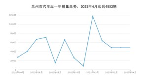 2023年4月,兰州市汽车总销量为4852辆,同比增长75.8%,环比持平。2022年04月-2023年04月份,兰州市总销量为64870辆,同比下降30.52%。在最近1年中,兰州市销量在2022年12月达到最高,销量为11772辆。