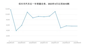 2023年4月,绍兴市汽车总销量为5610辆,同比下降52.06%,环比持平。2022年04月-2023年04月份,绍兴市总销量为101469辆,同比下降24.08%。在最近1年中,绍兴市销量在2022年04月达到最高,销量为11702辆。
