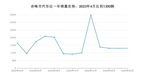 2023年4月,赤峰市汽车总销量为1300辆,同比下降20.25%,环比持平。2022年04月-2023年04月份,赤峰市总销量为20045辆,同比下降49.24%。在最近1年中,赤峰市销量在2022年12月达到最高,销量为3477辆。