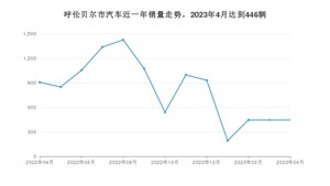 2023年4月,呼伦贝尔市汽车总销量为446辆,同比下降50.83%,环比持平。2022年04月-2023年04月份,呼伦贝尔市总销量为10650辆,同比下降42.06%。在最近1年中,呼伦贝尔市销量在2022年08月达到最高,销量为1426辆。