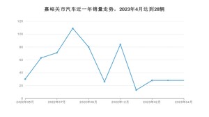 2023年4月,嘉峪关市汽车总销量为28辆,环比持平。2022年04月-2023年04月份,嘉峪关市总销量为560辆,同比下降80.85%。在最近1年中,嘉峪关市销量在2022年08月达到最高,销量为109辆。
