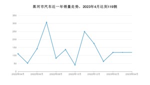 2023年4月,黑河市汽车总销量为119辆,同比增长8.18%,环比持平。2022年04月-2023年04月份,黑河市总销量为1716辆,同比下降54.07%。在最近1年中,黑河市销量在2022年07月达到最高,销量为307辆。