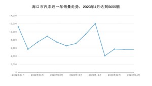 2023年4月,海口市汽车总销量为5655辆,同比下降49.66%,环比持平。2022年04月-2023年04月份,海口市总销量为97042辆,同比下降37.54%。在最近1年中,海口市销量在2022年12月达到最高,销量为12061辆。