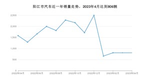 2023年4月,阳江市汽车总销量为806辆,同比下降48.96%,环比持平。2022年04月-2023年04月份,阳江市总销量为20076辆,同比下降31.48%。在最近1年中,阳江市销量在2022年12月达到最高,销量为2498辆。