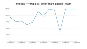 2023年4月,秦PLUS销量为14886辆,同比增长35.6%,环比持平。2022年04月-2023年04月份,秦PLUS销量为150045辆,同比下降10.16%。