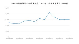 2023年4月,宋PLUS新能源销量为9041辆,同比增长23.36%,环比持平。2022年04月-2023年04月份,宋PLUS新能源销量为115005辆,同比下降7.33%。