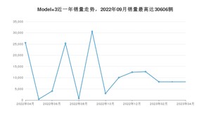 2023年4月,Model 3销量为8146辆,同比下降68.11%,环比持平。2022年04月-2023年04月份,Model 3销量为149160辆,同比下降5.62%。