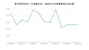 2023年4月,雷克萨斯ES销量为5239辆,同比下降39.77%,环比持平。2022年04月-2023年04月份,雷克萨斯ES销量为87430辆,同比下降19.25%。