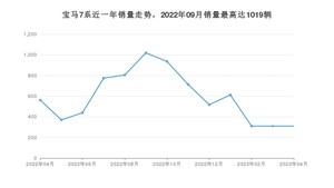2023年4月,宝马7系销量为310辆,同比下降44.74%,环比持平。2022年04月-2023年04月份,宝马7系销量为7676辆,同比下降61.26%。