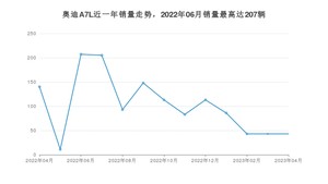 2023年4月,奥迪A7L销量为43辆,同比下降69.29%,环比持平。2022年04月-2023年04月份,奥迪A7L销量为1328辆,同比增长106.21%。