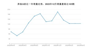 2023年4月,奔驰G级销量为124辆,同比增长69.86%,环比持平。2022年04月-2023年04月份,奔驰G级销量为1661辆,同比下降58.87%。