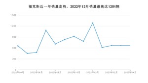 2023年4月,福克斯销量为664辆,同比增长1.07%,环比持平。2022年04月-2023年04月份,福克斯销量为9788辆,同比下降49.94%。