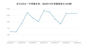 2023年4月,宝马4系销量为1289辆,同比增长188.37%,环比持平。2022年04月-2023年04月份,宝马4系销量为13508辆,同比增长30.99%。
