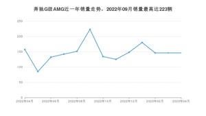 2023年4月,奔驰G级AMG销量为146辆,同比下降7.01%,环比持平。2022年04月-2023年04月份,奔驰G级AMG销量为1915辆,同比下降33.97%。