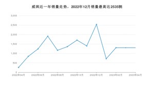 2023年4月,威飒销量为1301辆,同比增长402.32%,环比持平。2022年04月-2023年04月份,威飒销量为17034辆,同比增长3%。