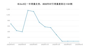 2023年4月,ID.6 X销量为60辆,同比下降91.16%,环比持平。2022年04月-2023年04月份,ID.6 X销量为6179辆,同比下降32.84%。
