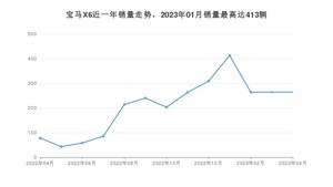 2023年4月,宝马X6销量为264辆,同比增长238.46%,环比持平。2022年04月-2023年04月份,宝马X6销量为2698辆,同比下降52.53%。