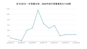 2023年4月,宝马2系销量为248辆,同比增长98.4%,环比持平。2022年04月-2023年04月份,宝马2系销量为4944辆,同比下降42.63%。