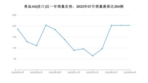 2023年4月,奥迪A6(进口)销量为203辆,同比增长9.14%,环比持平。2022年04月-2023年04月份,奥迪A6(进口)销量为1903辆,同比下降68.69%。