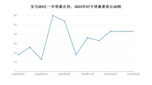 2023年4月,宝马M4销量为43辆,同比增长138.89%,环比持平。2022年04月-2023年04月份,宝马M4销量为387辆,同比下降53.93%。