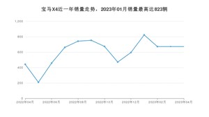 2023年4月,宝马X4销量为672辆,同比增长52.04%,环比持平。2022年04月-2023年04月份,宝马X4销量为7845辆,同比下降31.67%。