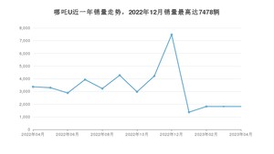 2023年4月,哪吒U销量为1813辆,同比下降46.12%,环比持平。2022年04月-2023年04月份,哪吒U销量为42446辆,同比增长47.5%。