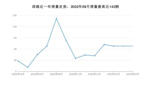 2023年4月,添越销量为68辆,同比增长142.86%,环比持平。2022年04月-2023年04月份,添越销量为775辆,同比下降30.05%。