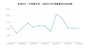 2023年4月,荣威i5销量为4231辆,同比下降15.35%,环比持平。2022年04月-2023年04月份,荣威i5销量为63598辆,同比下降42.18%。