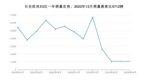 2023年4月,长安欧尚X5销量为1078辆,同比下降80.08%,环比持平。2022年04月-2023年04月份,长安欧尚X5销量为52672辆,同比下降59.47%。