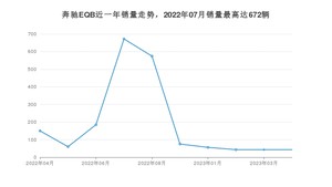 2023年4月,奔驰EQB销量为43辆,同比下降71.33%,环比持平。2022年04月-2023年04月份,奔驰EQB销量为1901辆,同比增长180.38%。
