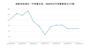 2023年4月,皓影新能源销量为73辆,同比下降42.52%,环比持平。2022年04月-2023年04月份,皓影新能源销量为1325辆,同比下降95.1%。