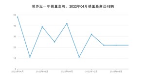 2023年4月,领界销量为22辆,同比下降54.17%,环比持平。2022年04月-2023年04月份,领界销量为274辆,同比下降97.86%。