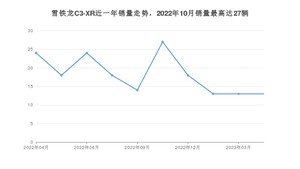 2023年4月,雪铁龙C3-XR销量为13辆,同比下降45.83%,环比持平。2022年04月-2023年04月份,雪铁龙C3-XR销量为182辆,同比下降91.81%。
