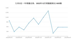 2023年4月,几何C销量为570辆,同比下降42.01%,环比持平。2022年04月-2023年04月份,几何C销量为9667辆,同比下降7.47%。