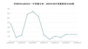 2023年4月,荣威RX5 MAX销量为148辆,同比下降60.85%,环比持平。2022年04月-2023年04月份,荣威RX5 MAX销量为3162辆,同比下降81.97%。