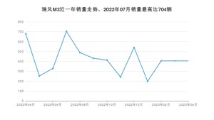 2023年4月,瑞风M3销量为405辆,同比下降40.27%,环比持平。2022年04月-2023年04月份,瑞风M3销量为5490辆,同比下降71.83%。