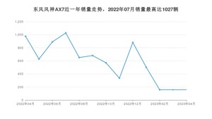 2023年4月,东风风神AX7销量为158辆,同比下降83.81%,环比持平。2022年04月-2023年04月份,东风风神AX7销量为7615辆,同比下降69.7%。