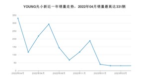 2023年4月,YOUNG光小新销量为31辆,同比下降90.63%,环比持平。2022年04月-2023年04月份,YOUNG光小新销量为1613辆,同比下降20.85%。