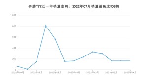 2023年4月,奔腾T77销量为163辆,同比增长167.21%,环比持平。2022年04月-2023年04月份,奔腾T77销量为3254辆,同比下降77.8%。