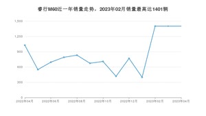 2023年4月,睿行M60销量为1401辆,同比增长36.42%,环比持平。2022年04月-2023年04月份,睿行M60销量为11058辆,同比增长279.09%。