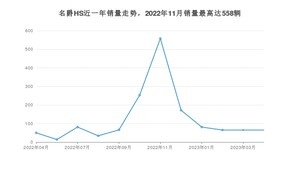 2023年4月,名爵HS销量为65辆,同比增长30%,环比持平。2022年04月-2023年04月份,名爵HS销量为1504辆,同比下降19.49%。