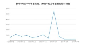 2023年4月,枫叶60s销量为218辆,同比下降64.61%,环比持平。2022年04月-2023年04月份,枫叶60s销量为13017辆,同比增长956.57%。