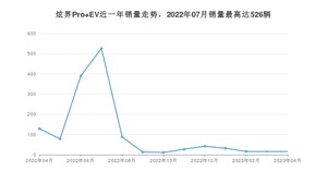 2023年4月,炫界Pro EV销量为16辆,同比下降87.6%,环比持平。2022年04月-2023年04月份,炫界Pro EV销量为1384辆,同比增长51.09%。