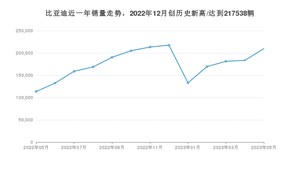 在国内市场上,比亚迪,在2023年5月的销量为209730辆,同比增长84.59%,环比增长14.27%。2022年05月-2023年05月份,比亚迪累计销量为2277175辆,较去年同期增长130.58%。